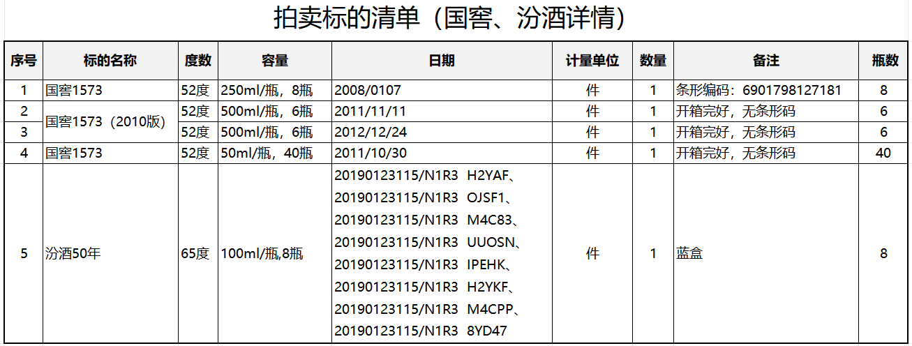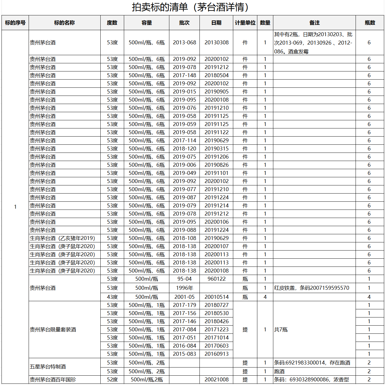 1、酒水一批(包含贵州茅台酒、五粮液酒、国窖、汾酒等);