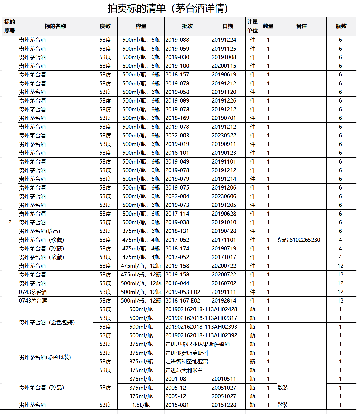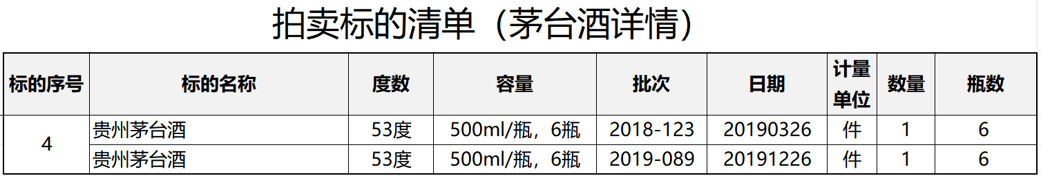 标的4:贵州茅台酒2箱共12瓶(2019年)