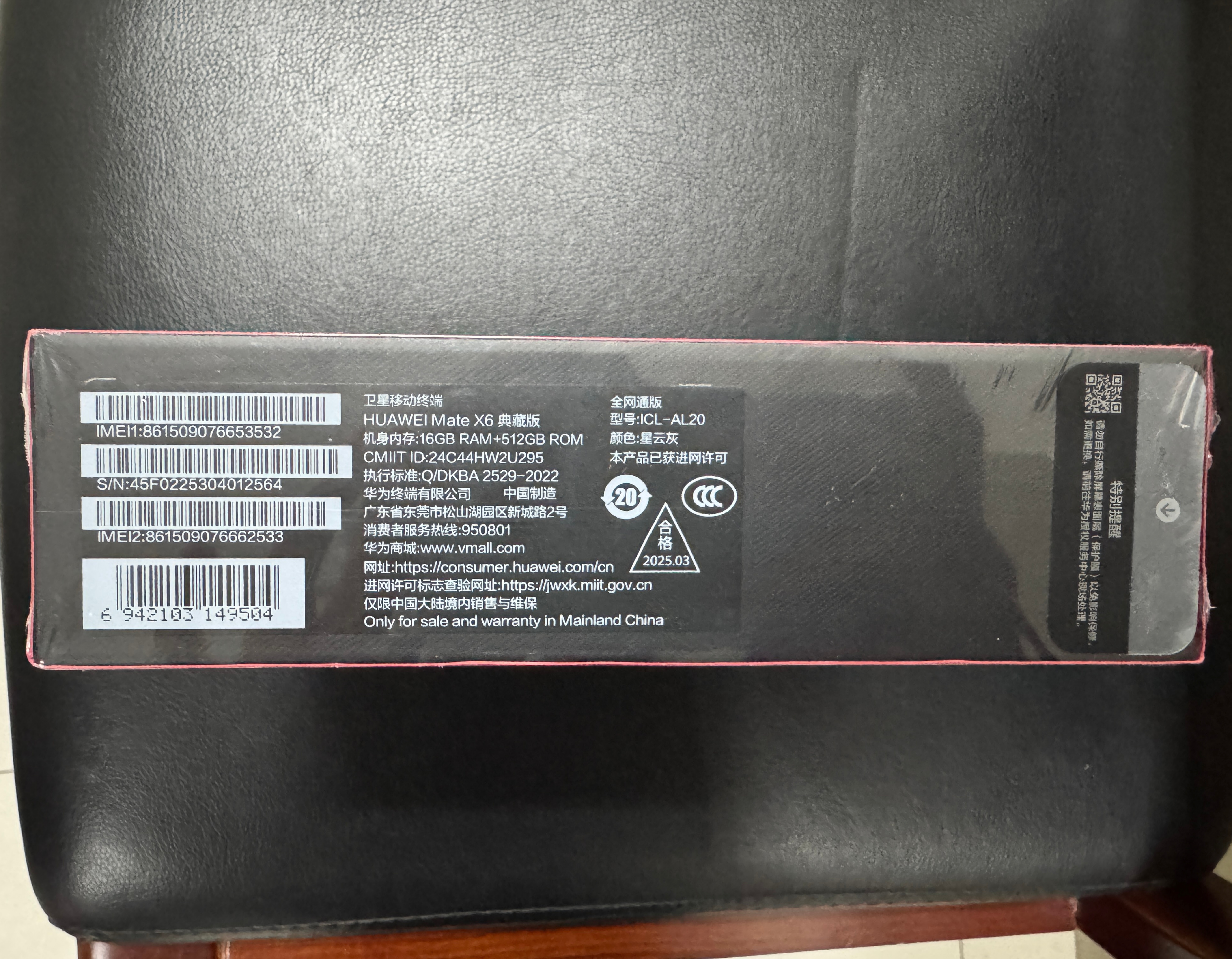 标的7:华为MateX6 典藏版手机一部(16G+512G星云灰)