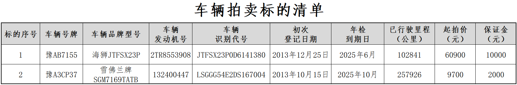 旧机动车拍卖公告