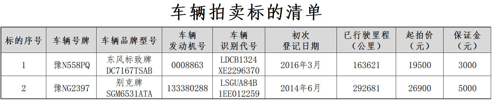 (二)竞买人必须于2026年4月7日17时前(以实际到账为准)向指定银行(户名:河南豫财拍卖有限公司 ,开户银行:中信银行郑州分行营业部 ,账号:8111101012700719610)交纳规定数额的竞买保证金,而后持身份证原件(公司参加竞买持被授权人身份证、机构营业执照、授权委托书)到我公司办理竞买登记手续,认同竞买须知,签署竞买登记审核表,确认登录系统的认证码(以E-mail方式发送),方成为合法的竞买人。